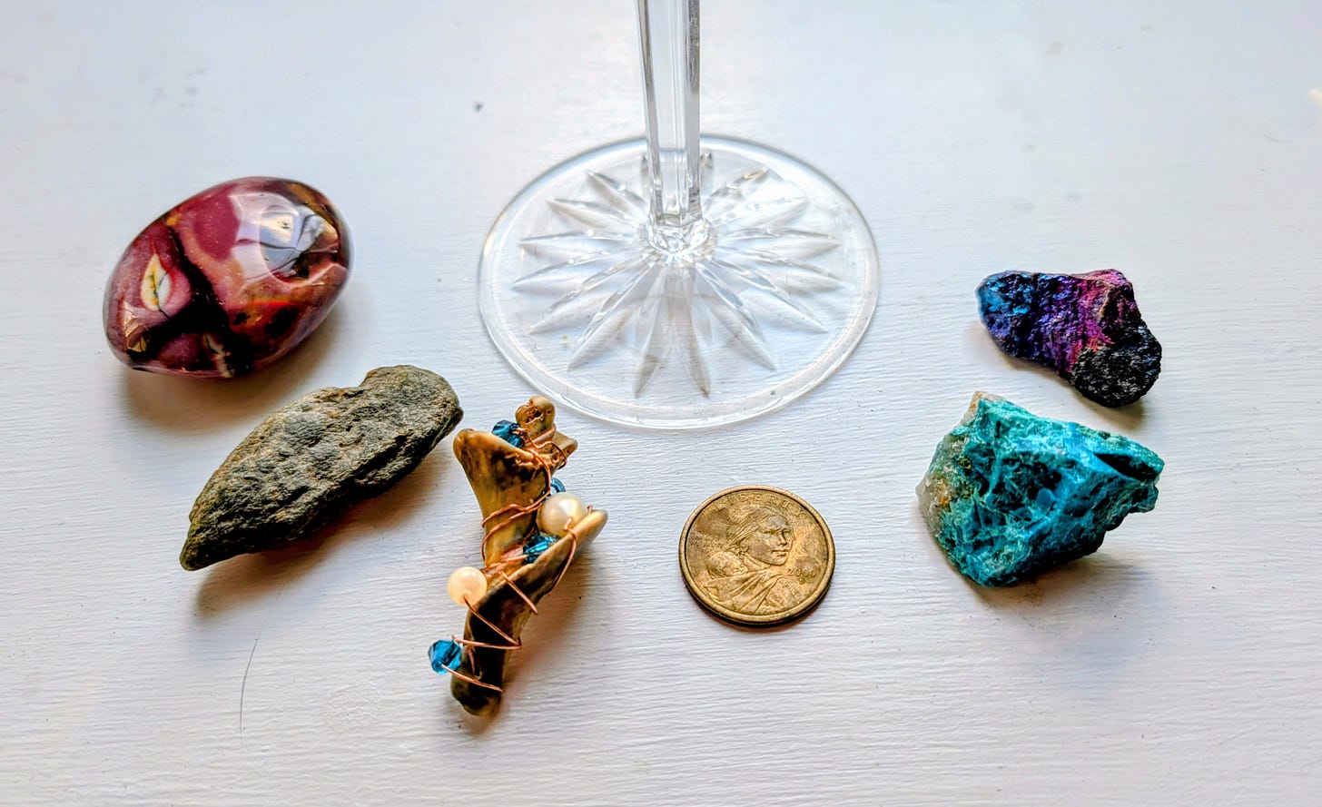 My full moon practice involves prayer, symbolism and simply making time to be with Grandmother Moon in gratitude for all that I have and all that I am. I enjoy charging objects that are special to me under the full moon light. Each one represents an element. I hold each object, call in the element associated with it, and speak a blessing. In doing so I’m not only blessing the object but also sending love and gratitude out into the world as well. I also fill a fancy glass with water, speak blessings into it and let the full moon work her magic on it overnight. In the morning, I drink the water to take in the blessing, offer some to a plant friend and some to my animal friends. Blessings multiply when shared.