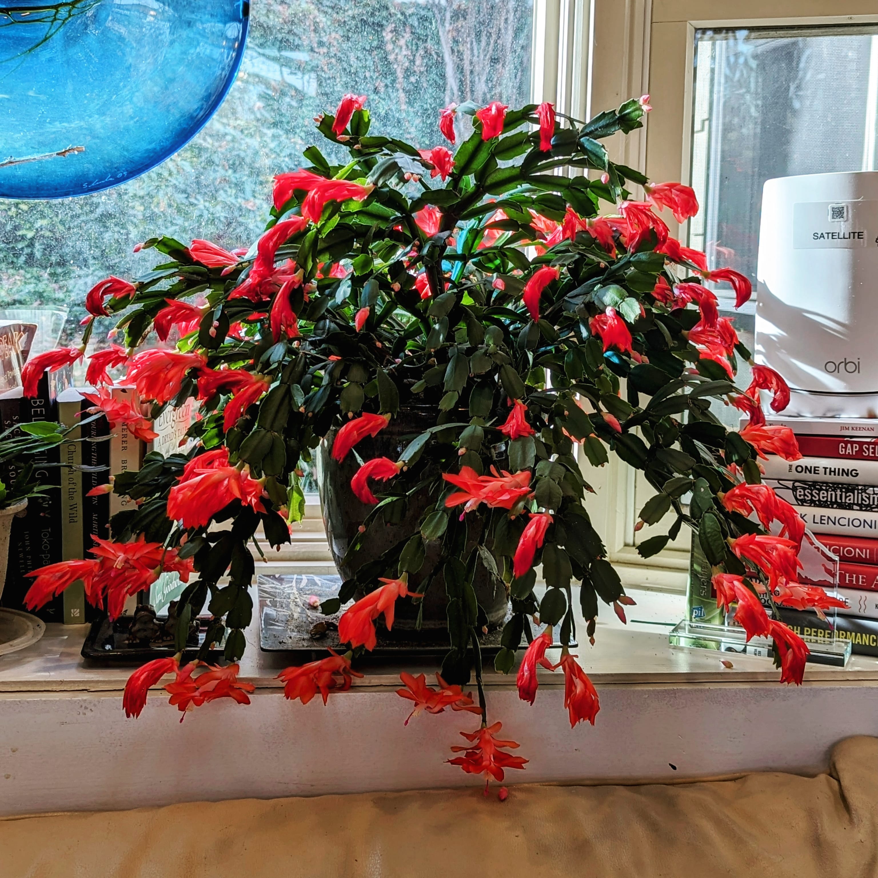 I started my first professional job in 1996 after I graduated from college. I can still remember that fall day I walked into the market to buy something for lunch and saw the sweetest little Thanksgiving cactus sitting on a rack. She was just beginning her life as was I. She had about three springs that looked happy and healthy. One of them held the beginnings of a peachy-orange bud.